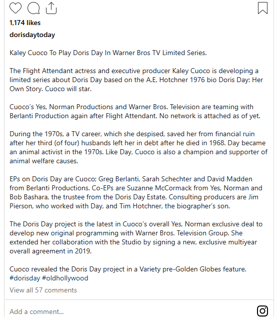 Throughout her 50-year career, Doris was beloved and respected for her work in movies. She gained notoriety after appearing in films including The Man Who Knew Too Much, Love Me or Leave Me, and Pillow Talk.