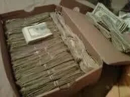 She concurred that he need to know what was inside the box at this point. Upon opening it, he discovered a $95,000 cash stack and two crocheted dolls. He questioned her about what was in it.